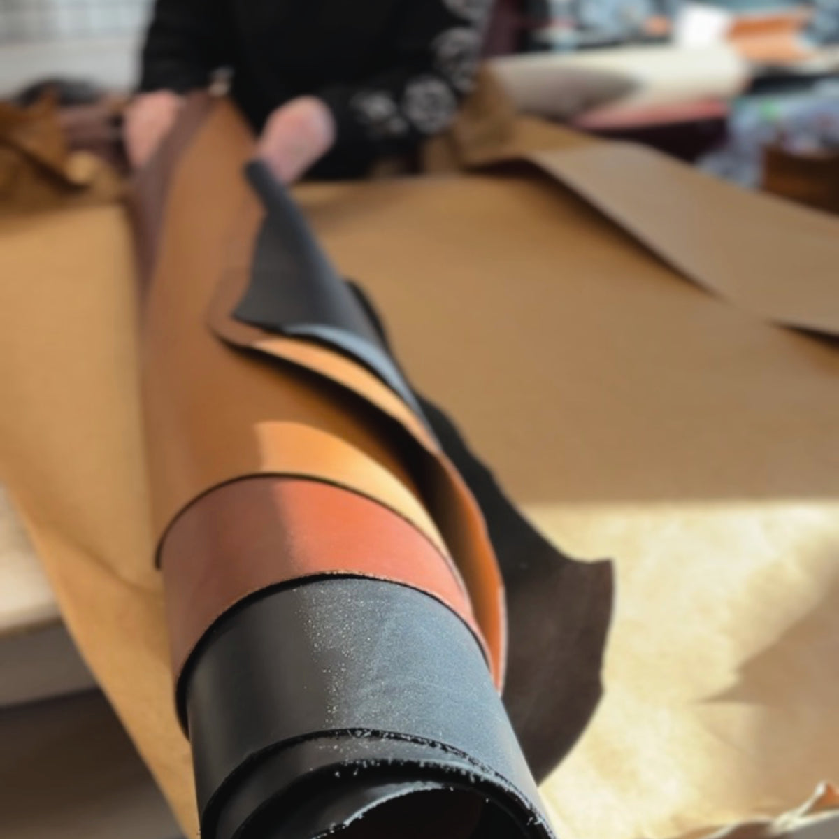 We start out with a full double-shoulder of the finest italian vegetable-tanned leather. With it's firm temper, soft back and consistent face, it's ideal for building wallets. Each pocket is either hand cut, or cut with a custom-made die using our clicker press.