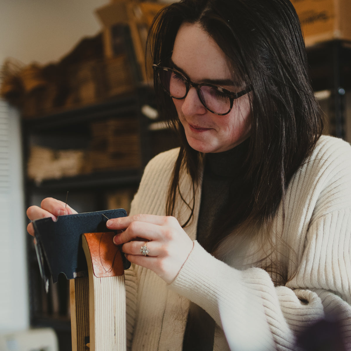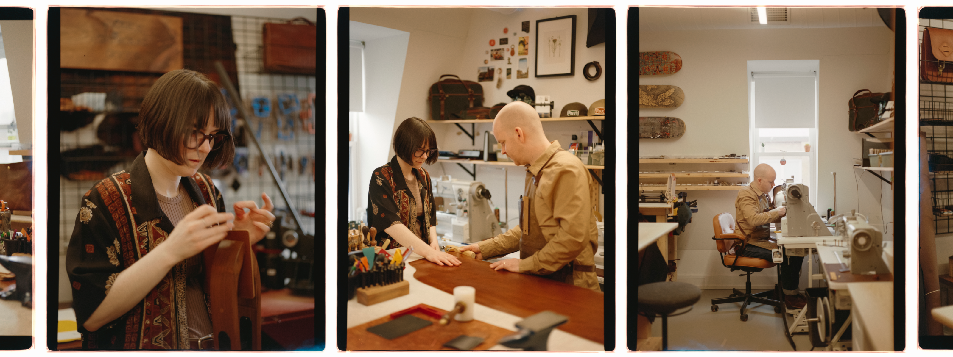 Each stitch hole is punched by hand with pricking forks. We hand sew the wallets, using the tried-and-true saddle-stitch technique.