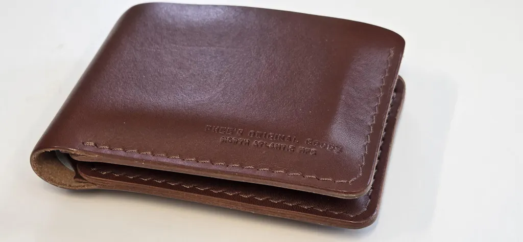 We take a hide of full-grain leather and cut out each pocket individually. The pockets are then assembled using hand tools and traditional techniques. The wallet panels are hand sewn using a saddle stitch and the edges are burnished by hand. Burnishing begins the patina which is the aging process that makes your wallet unique to you.