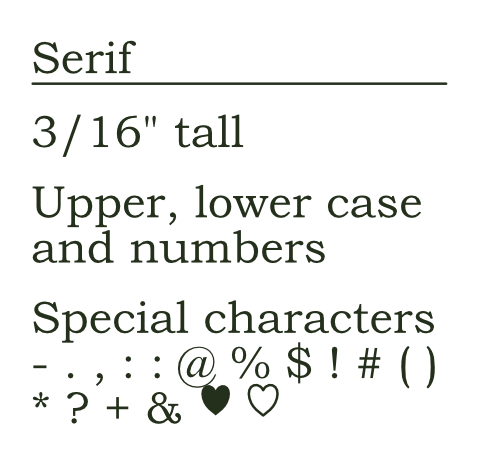 Location of embossing is specified on each product page. Leave a note at checkout for custom placement, or email us.